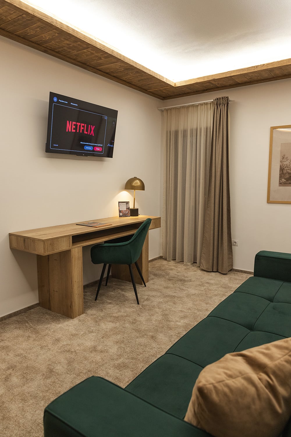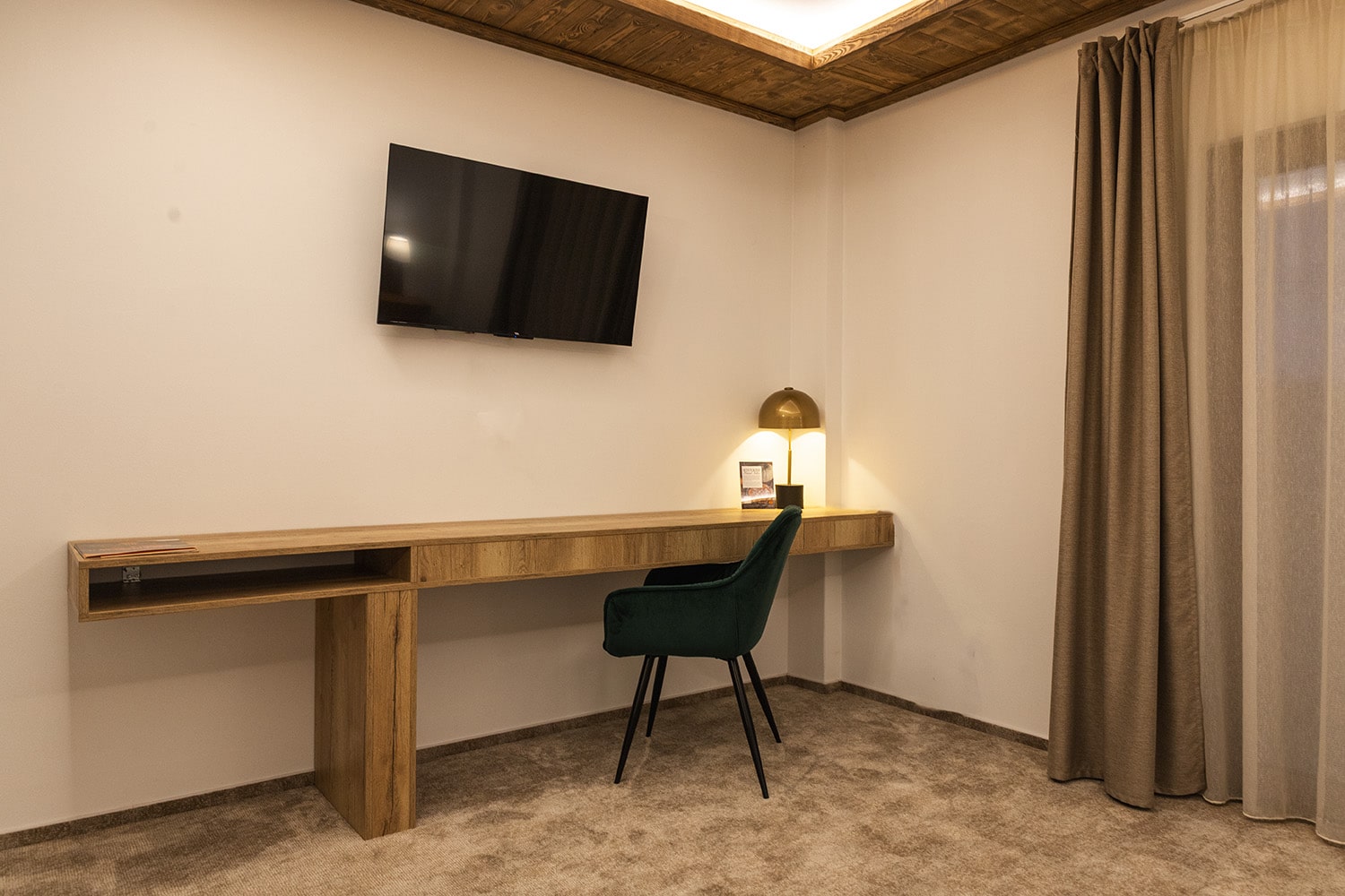 Mai spațioase și atent finisate, camerele Deluxe îmbină eleganța modernă cu elemente rustice din lemn, oferind un confort premium fără a pierde farmecul autentic al Hanului. Un refugiu luminos, natural și relaxant.